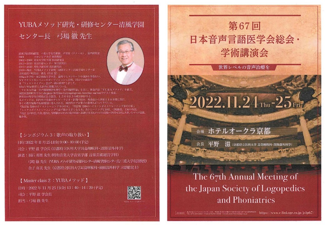 ・11/26 「YUBAメソッドによるボイストレーニング法~音声障害にならないための声作り」