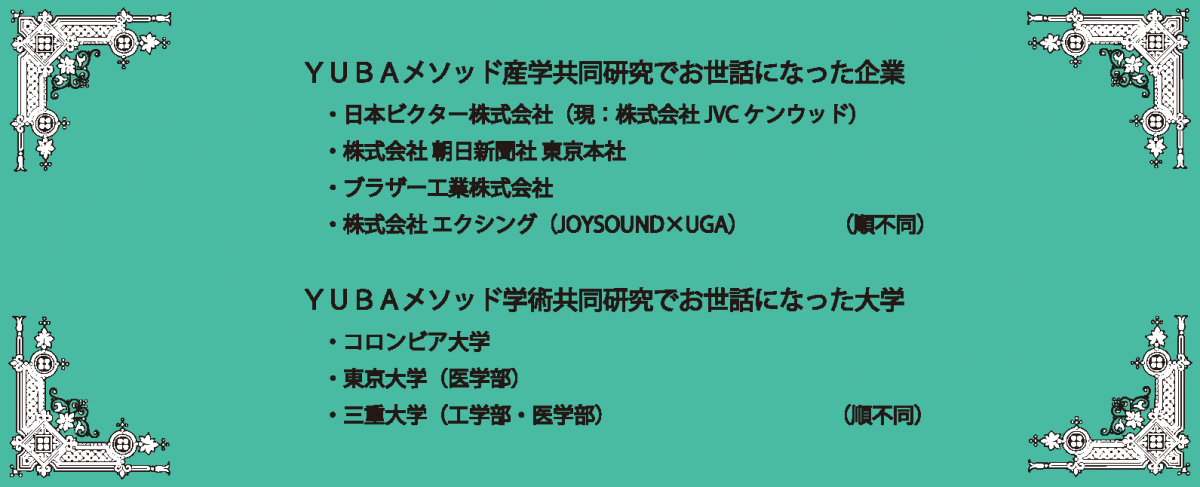 YUBAピアノメソッドとは,腕や手指の筋肉及び関節の機能をふまえて科学的な研究を基に,手指の最適なフォームや打鍵動作を実験によって検証し,効率の良いピアノの打鍵法を構築したものです。ここでの効率の良い打鍵法とは,音量や打鍵の速さなどが同じ条件の場合,筋肉への負担がより少なく,障害を引き起こしにくいことであり,このメソッドの開発により、疲労・障害、また弾きにくさなどの問題が解決できるようになりました。